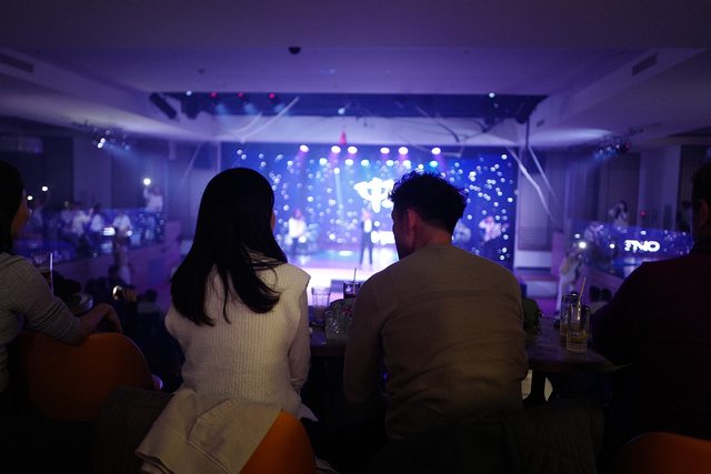台上的表演人員大多是早上的滑雪教練,這錢真是難賺