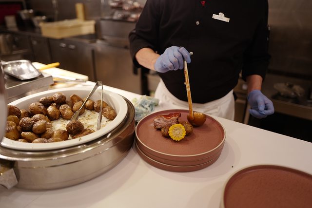 鮭魚排也是亂七八糟,又水又柴,我這料理白癡煎的都吊打……