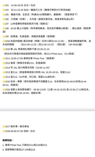 標題[問題] 2/4-2/18東北北海道行程請益,感謝