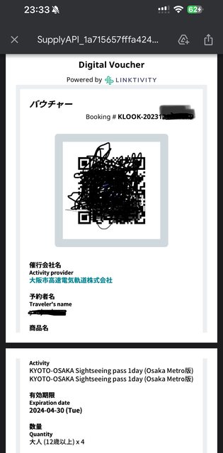 標題[讓售] 京都大阪觀光一日券(大阪地鐵版)4張