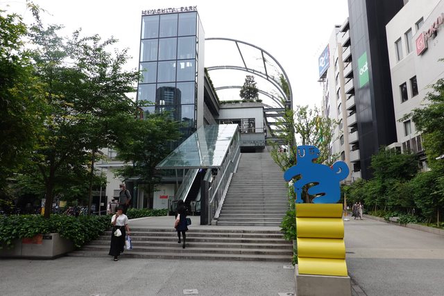 逛到宮下公園 一個複合式大樓 頂樓4F有戶外公園.運動場.攀岩場.星巴克 1~3樓有餐廳和賣場