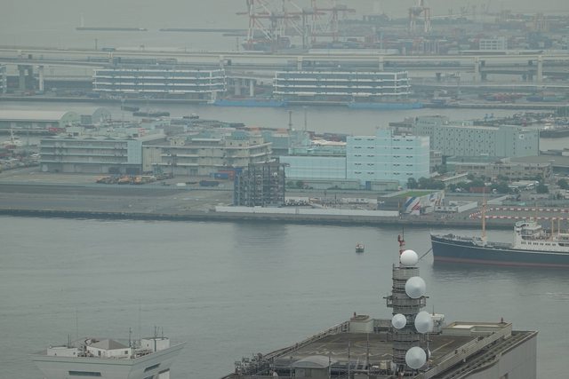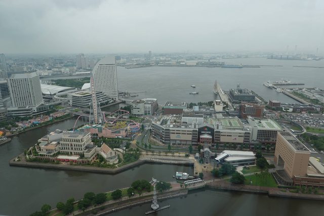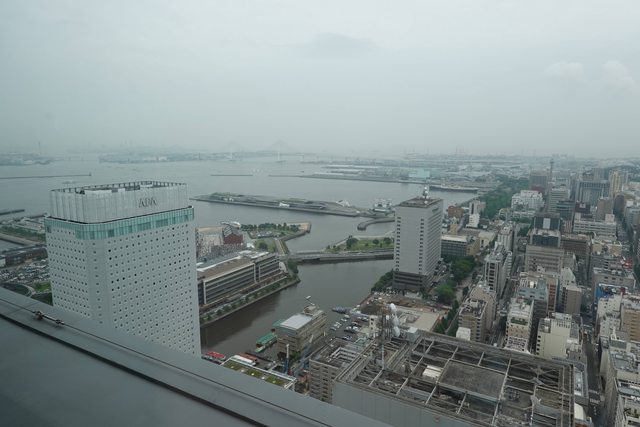 吃完去老闆娘推薦的46樓免費觀景台 北仲ブリック&ホワイト 位於馬車道站2號出口旁 從 Oakwood Suites Yokohama 這間飯店入口上去 這邊也可以看到下面的新纜車 還有紅磚倉庫(只是視角有點被APA飯店檔到) 遠處也可以瞄到鋼彈工廠 (寶可夢郵筒是在對面的1a出口處)