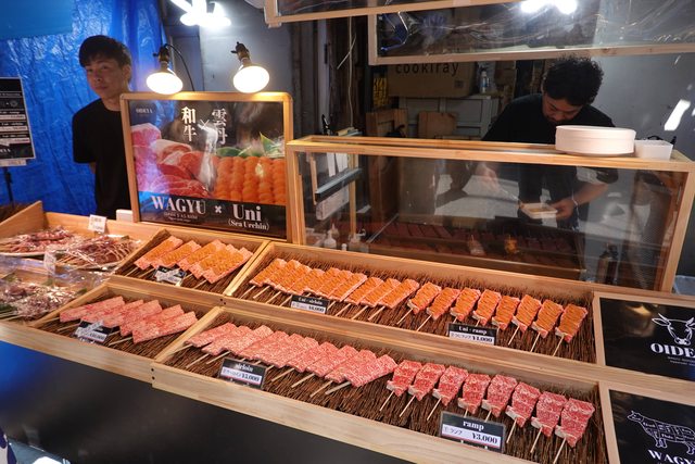 吃完就沿路逛看看有啥想吃的 看到海膽跟和牛的邪惡組合真的買不下去 好貴阿 哈哈