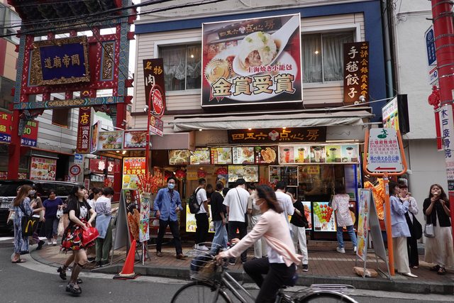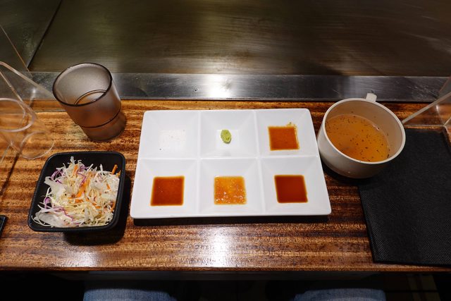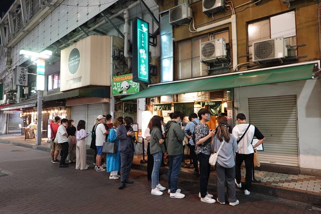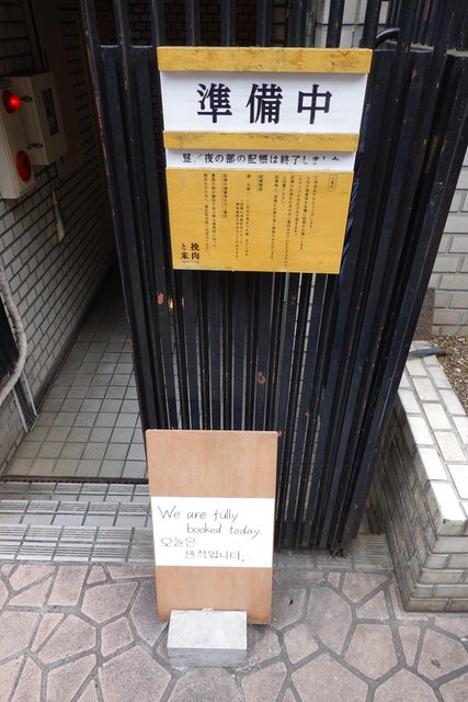 之後就邊排隊邊跟前面新北蘆洲來的一家三口聊了起來 他們說昨天才剛去迪士尼玩完 隔天就要回國了 排隊約45分鐘才入內用餐 內部約十個位置 因為店家也在JR高架化鐵路的沿線下 所以吃飯會不時聽到JR經過的震動聲