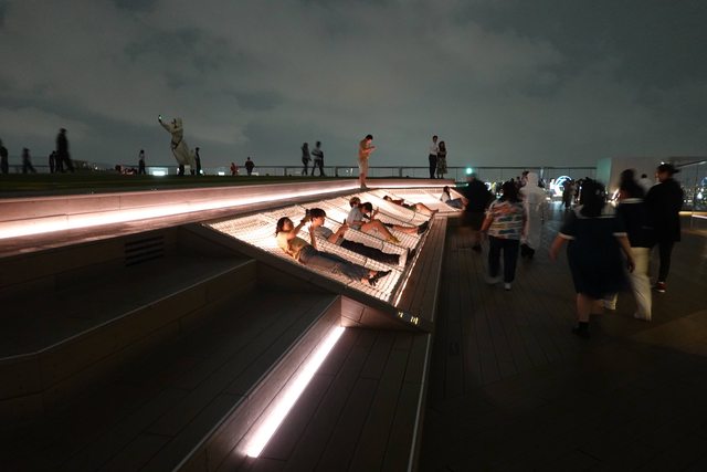 最後看完最後一場演出才步行慢慢逛回地標摩天輪 沿路經過山下公園.海洋塔.冰川丸.大棧橋(拍夜景).紅磚倉庫.摩天輪 不過到達紅磚倉庫都幾乎打烊關門 剩餐廳營業 原來白天紅磚倉庫有"Japan Burger Championship 2023"大賽 應該順路來吃才對 可惜啦 最後不知吃啥 搭車回JR兩國站旁吃松屋 回飯店腳累爆 連去樓下B1大浴場泡溫泉都超懶