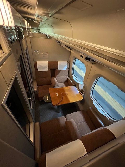 四人一間的包廂,共設置了四間,簡直是高速行駛的行動會議室。
