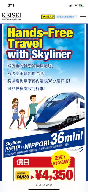 推 leejones : 這應該是skyliner+jal宅配行李,要注意的是看說明行 01/08 10:20