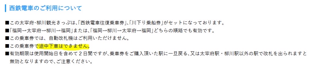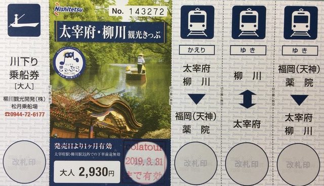 請問此紙本套票依行程去斯紙本最右邊,如果我柳川太宰府玩完,返回天神途中可以提早