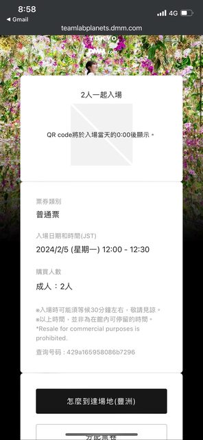 標題[讓售] teamLab Planets Tokyo 2/5(一)一張