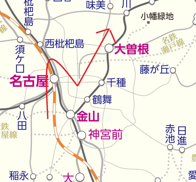 P.S.和其他站〝經過〞金山並於名古屋換乘折返適用規則不一樣
