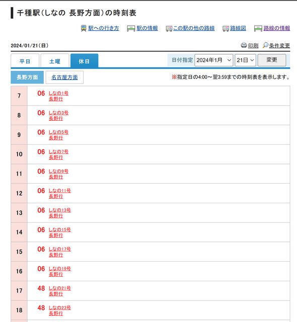 (四) 從金山到名古屋轉乘しなの之安全檢索版