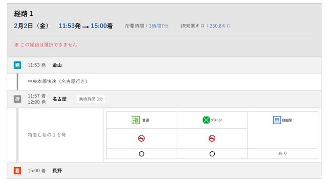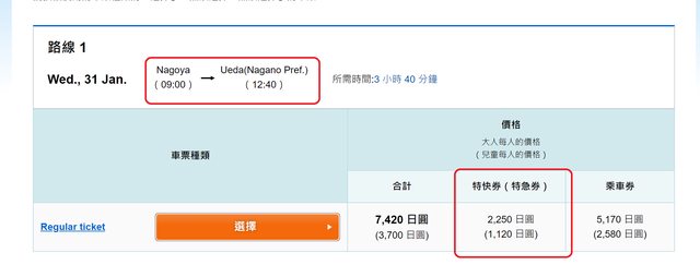 票券會和(二)從金山到名古屋轉乘しなの一樣,但一定跑得出來從