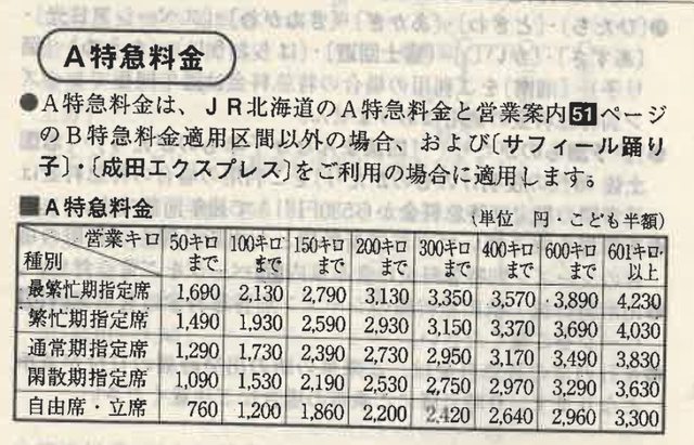 2.特急料金因距離都在200km-300km,價格皆相同,