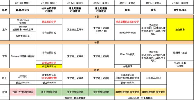 1. 出遊日期: 2024/3/10~3/16,7天6夜