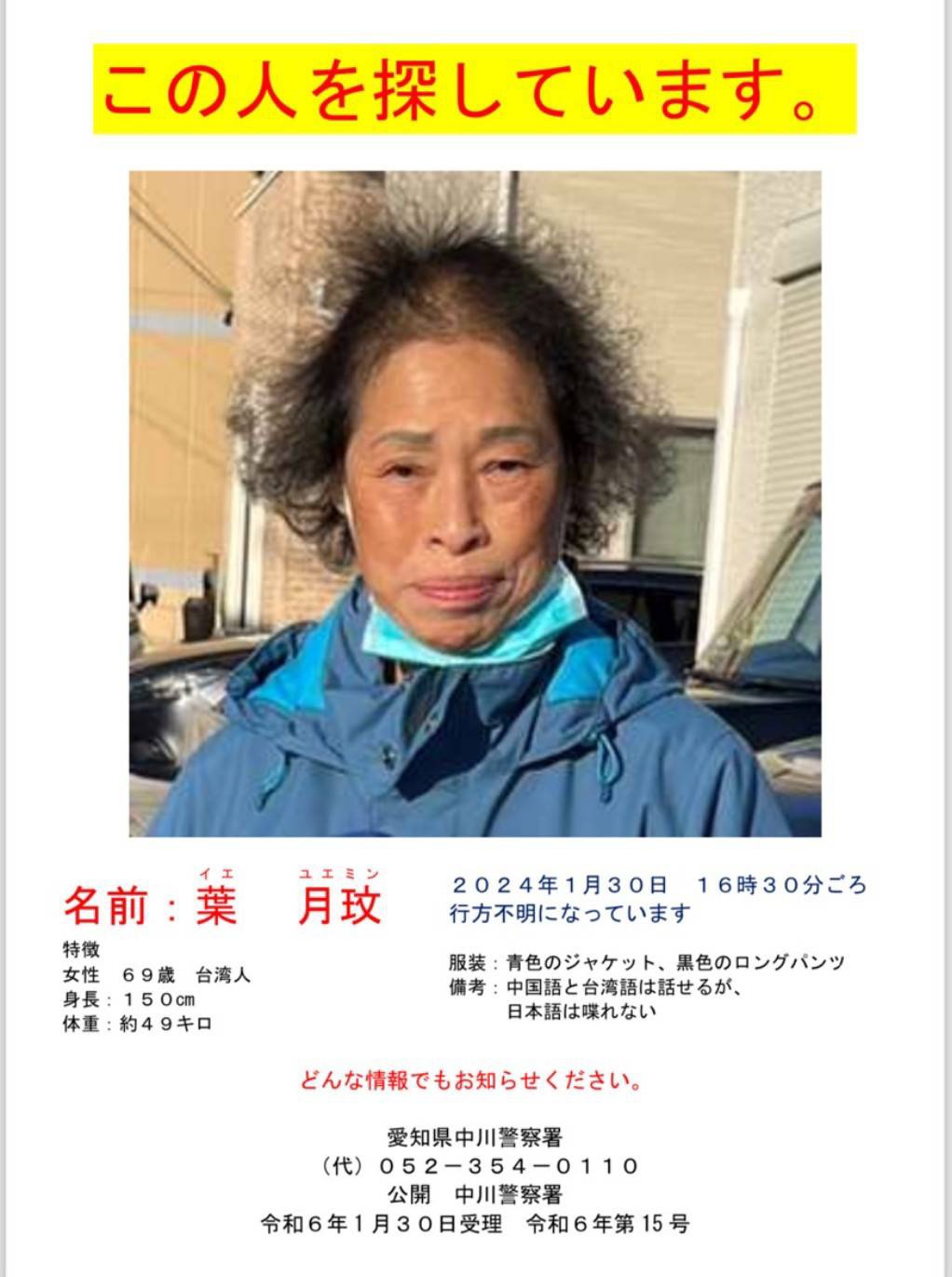 推 levs : 是不是有失智症然後去日本探親時亂跑失蹤? 01/31 08:43