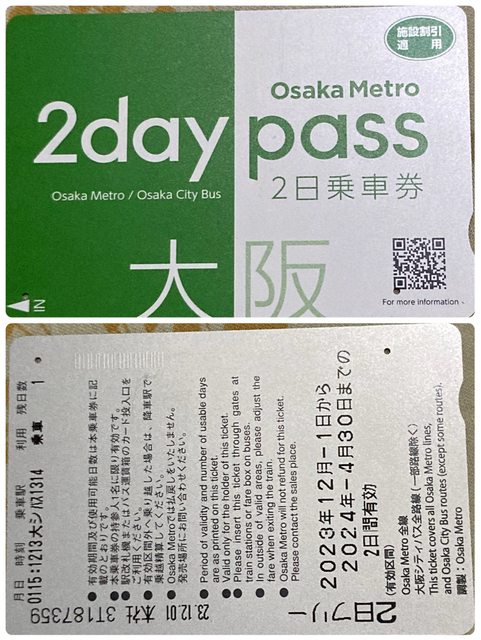 標題[讓售] 大阪地鐵公車二日券 剩1日