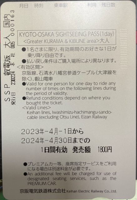 標題[讓售] 大阪地鐵及京阪(鞍馬貴船)各三張