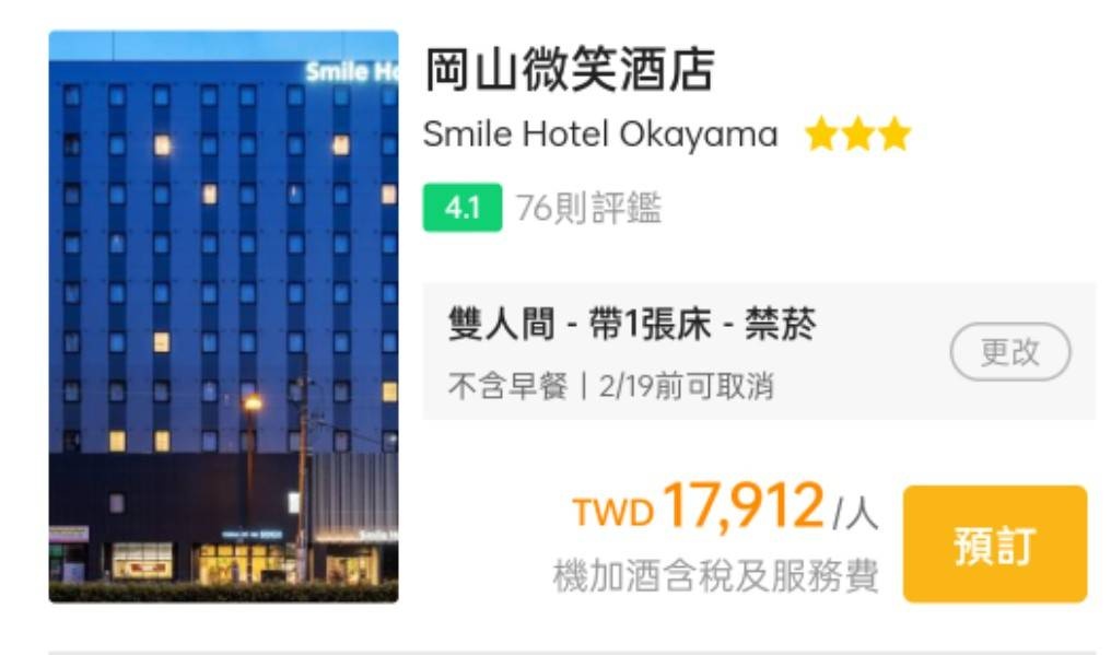 推 younger50 : 飯店還可以拼免費取消 機票買了就別看 02/09 09:39