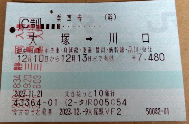 東京-新函館北斗特急券二張同時插入乘換口,會吐回名古屋-小樽乘車券