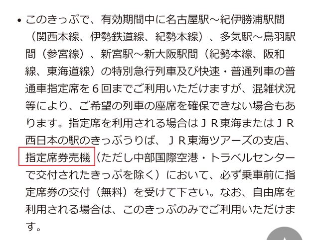 : 問題是網上我用英文日文也幾乎沒找到在小氣東海的用機器換pass的方式(似乎只有窗口),都只有西日本和東日本的介紹。因為自己想用自動售票機劃位指定席玩玩看,東海區間要劃位的就只有南紀:名古屋~松阪、松阪~新宮。目前有看到西日本的是綠色售票機那東海的好像是指定席售票機嗎?