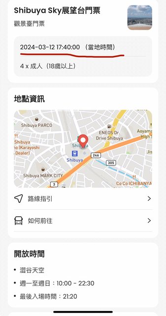 Shibuya Sky展望台門票四張3/12 17:40入場