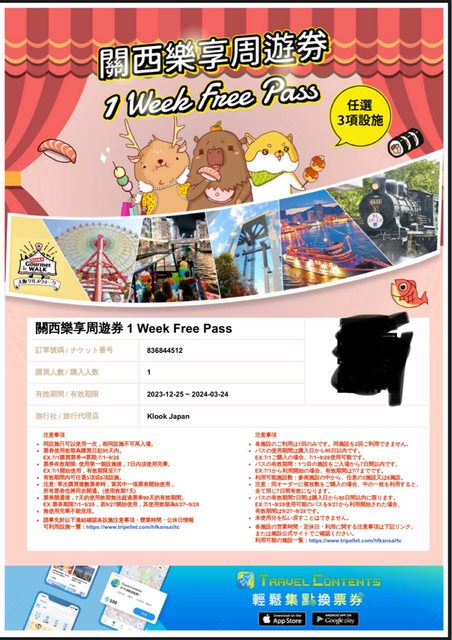 朋友給的兩張關西樂享周遊券沒用到~