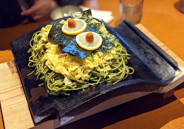 蛋絲、海苔、牛肉、檸檬、辣蘿蔔泥