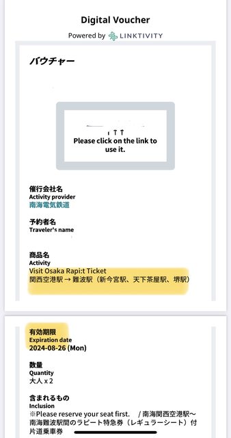 標題[讓售] 南海電鐵特急 Rapi:t車票 關西機場-難波
