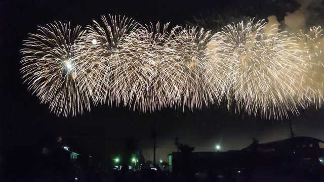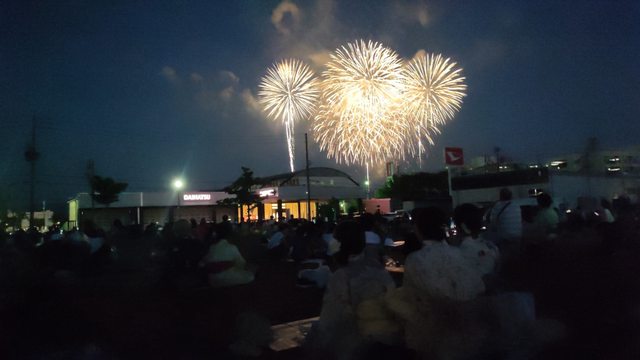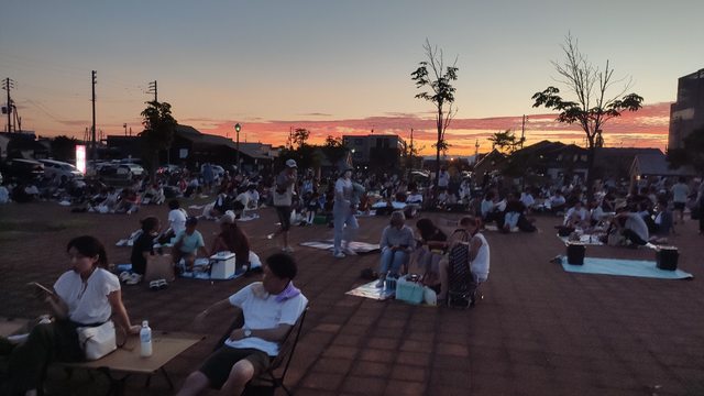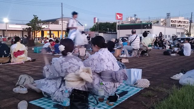 古正寺中央公園,有些賣場停車場會提供民眾席地看煙火,或是路邊拉著桌子椅子鋪上地