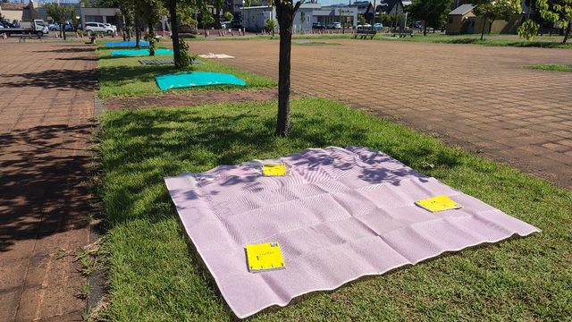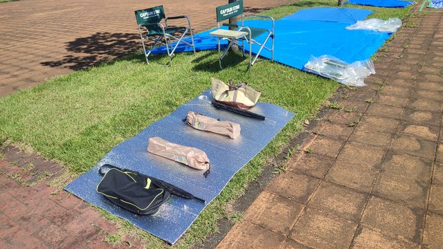 待不住也沒啥好看,所以都佔位買個便宜的地墊大約(300日幣)有附上塑膠營釘,用完即