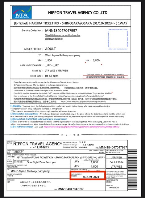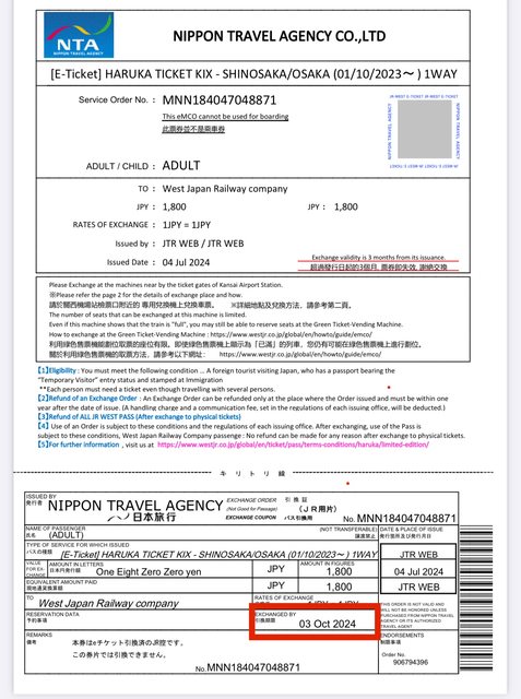 標題[讓售] JR特急HARUKA單程票x2関西空港→(新)大阪