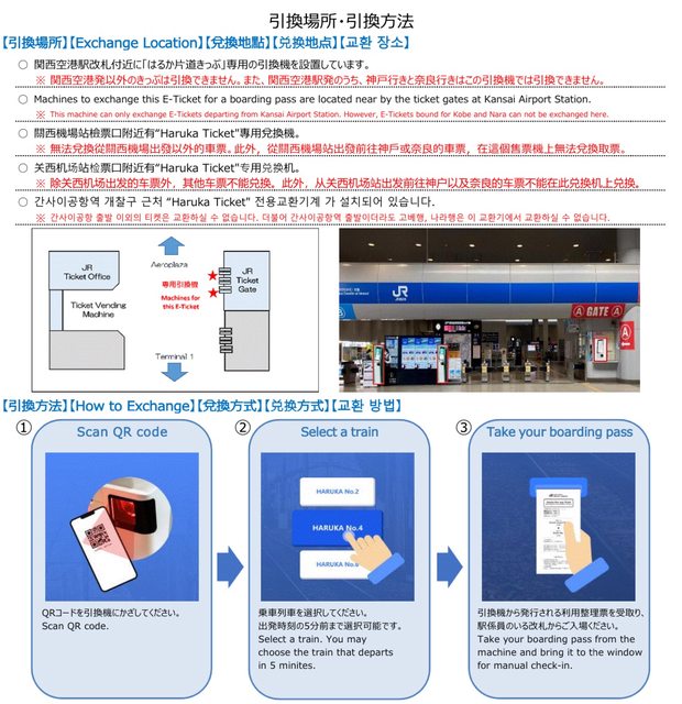 本券可在「關西機場站」改札口白色機器掃QR code兌換