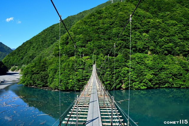 或許有著同樣令人屏息的絕景,但這座吊橋距離水面頗高,周圍蓊鬱的森林讓視野顯得封