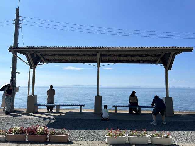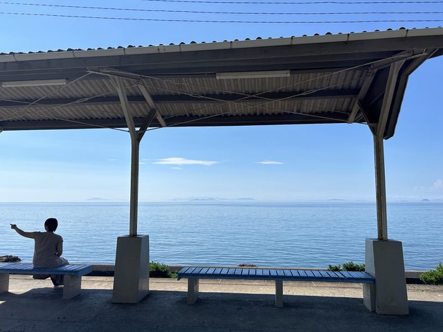 是一座小小的無人車站,但是從車站的涼亭拍出去的瀨戶內海,和隱約看見的本洲島,