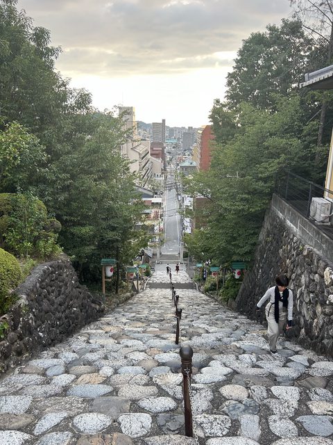 一路狂奔至神社最終勉強趕上,參拜完之後我就沿著商店街往道後溫泉前進,然而此時
