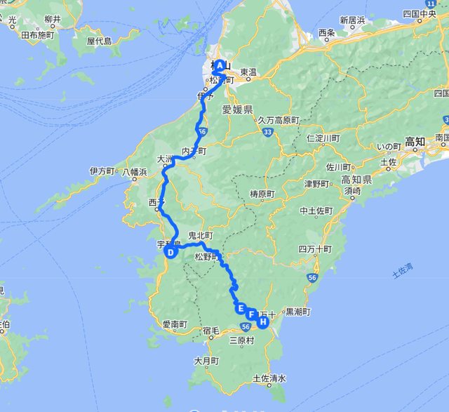 因為打算環四國一周,且要從福岡出發,因此從大分走海路進四國愛媛,之後逆時針繞