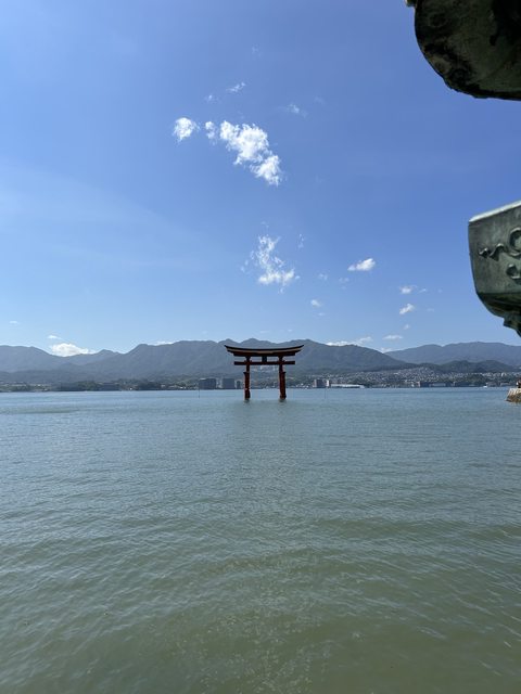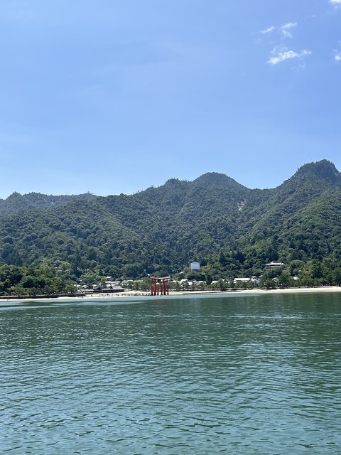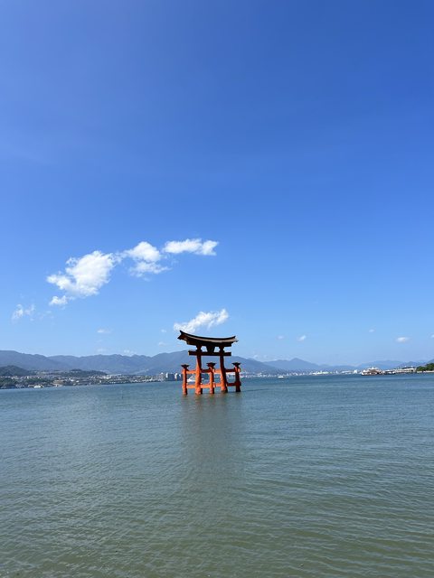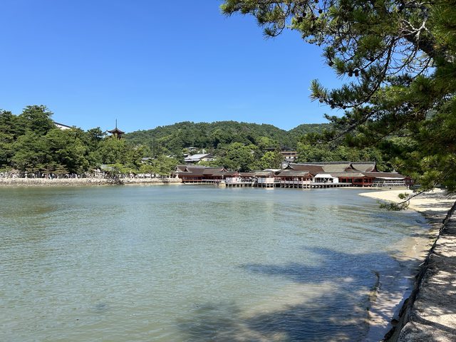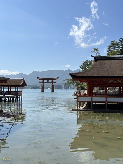 離開水族館走去嚴島神社時,海水已經漲潮了,因此有著跟剛登島時不一樣的景色,鳥居