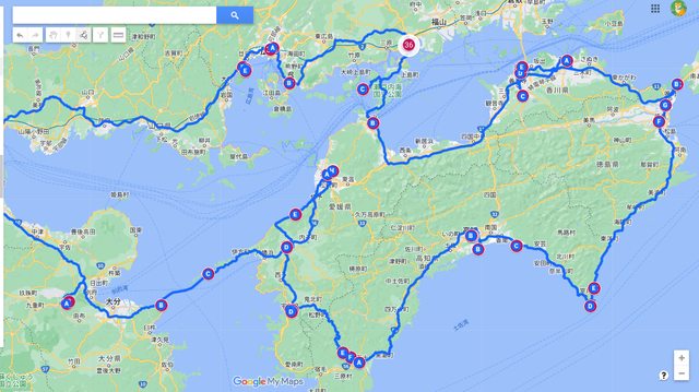 因為打算環四國一周,且要從福岡出發,因此從大分走海路進四國愛媛,之後逆時針繞