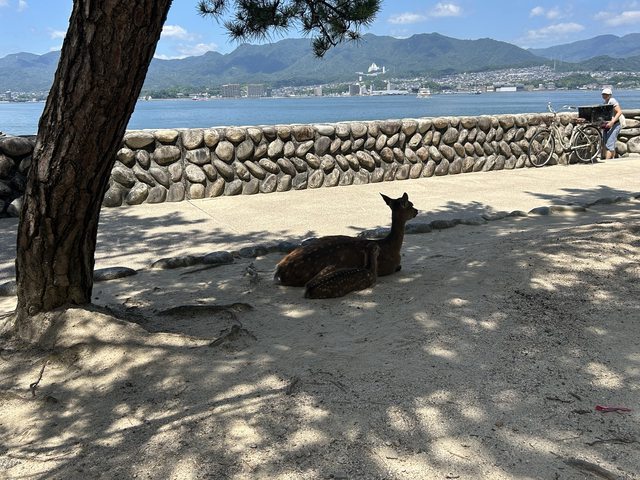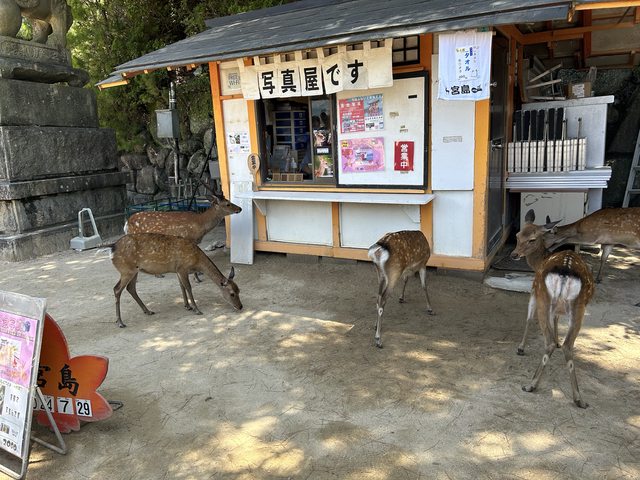 抵達宮島後,就開始沿著商店街閒逛,一路上可以發現這邊有不少的鹿,而且都不會怕人