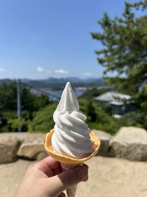 單程票到山頂,在山頂的商店購買了檸檬冰淇淋,邊吃冰淇淋邊欣賞著尾道海道的美景。