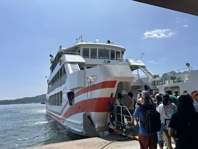 搭上渡輪,在船上就發現歐美遊客非常的多,仔細回想前一天在廣島市區時,歐美人也是