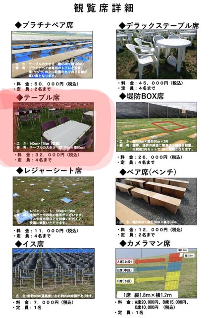 1. 讓售品項:第96回全國花火競技「大曲花火」座位席票券 (テーブル席 1枚)