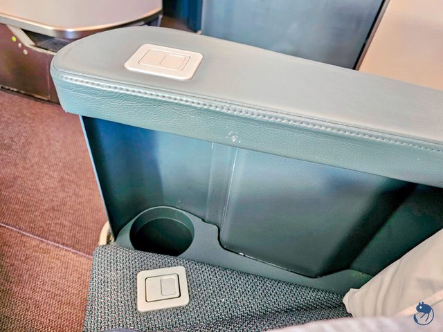 座位右側扶手旁有個可以放水的置物區,礦泉水放進去剛剛好,但是置物區卡卡的,沒有