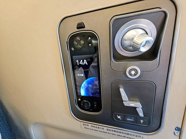 今天座位在14A,左側第二排靠窗位(兩側座位A與K從12排開始,中間座位D與G從11排開始