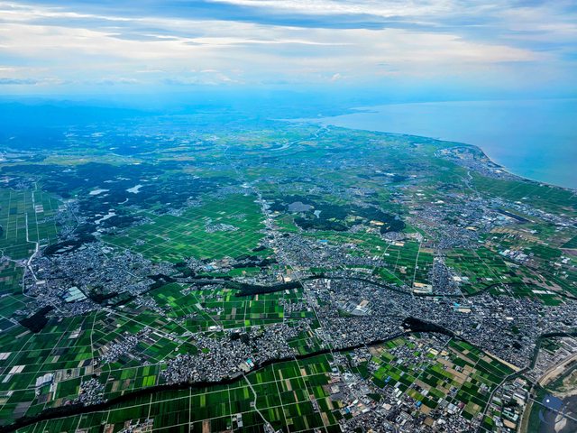 九州的宮崎市,還可以看到位在宮崎市南端,27跑道端突出海岸的宮崎空港。