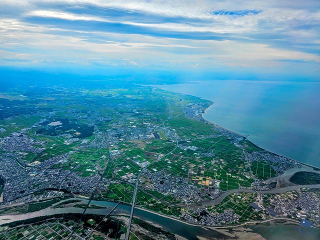 名古屋中部國際機場建在伊勢灣的人工島上,所以我們是穿過整個伊勢灣從機場南端的36