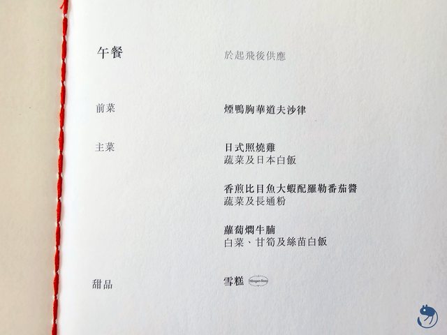 午餐有三樣可以選,由於是短程航線,前菜與主菜就會一起上了。