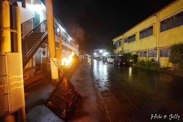 來到本堂正面,面對的是沒有開啟的「中門」,兩旁的白璧土塀,就是光雕投影的位置,