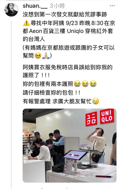 → shanyaochung: 失主有說店員跟她要護照的時候,她才發現店員拿給 09/24 23:10