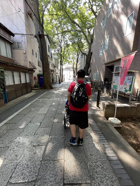女坂其實不太適合推輪椅,之前看google map 的時候,沒有注意到弟弟推到太累,換我接著推,最後我們只到達了權現茶屋,在椅子上休息一下,我與弟弟輪流去藥王院参拜。